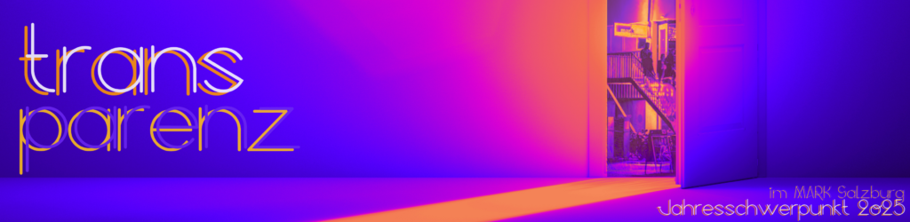 Am 20. und 21. November dreht sich im MARK Salzburg alles um das Jahresschwerpunktthema Transparenz. Im Rahmen dieser beiden Tage finden im MARK Salzburg vielfältige Veranstaltungen statt, die zum Mitmachen, Diskutieren, Zuhören und Erleben einladen. Hier findest du das Projekt- & Veranstaltungskonzept.